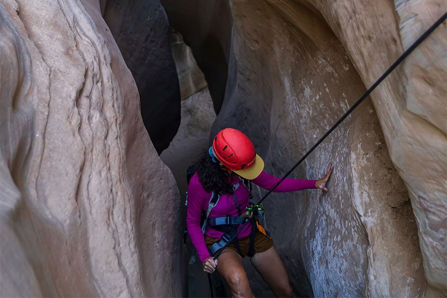 This slot canyon adventure includes hiking, rappelling, scrambling and amazing views! Our guides will lead you through with gear, instruction and knowledge of the aea. They will have you on a back up belay at all exposed areas to ensure safety at all times. This canyon would be a great option for begginners! The duration of the adventure is between 3 to 4 hours.